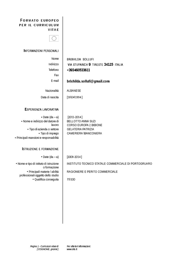 Esempio Reale Di Curriculum Vitae Europeo Esempio Curriculum Europass